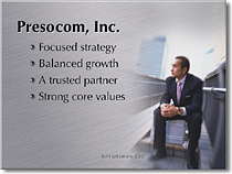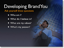 我经常在幻灯片中使用人物图片,因为人物照片有助于增加观众与幻灯片之间的情感联系。如果相片处于次要地位,我就降低不透明性,并在Photoshop中增加一个高斯模糊或动态滤镜;如果相片位于主要区域,我希望观众注意它(例如产品图片),那么图片可以变得更为显著,且不必要多少(或根本不需要)文字说明。